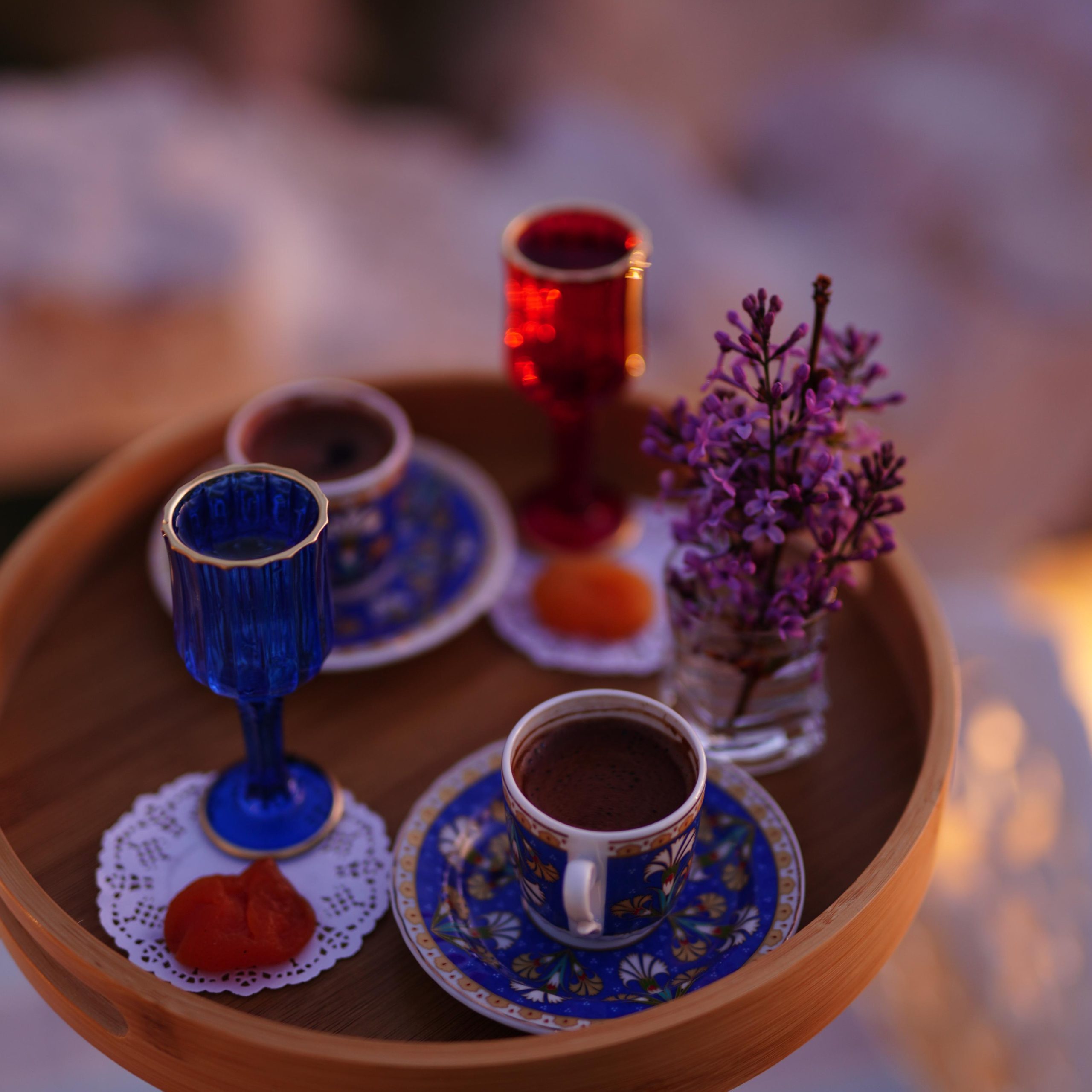 A charming breakfast with Turkish breakfast, carpet and special lights